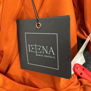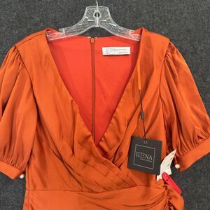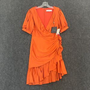 Ieena for Mac Duggal Dress Women's 2 Burned Orange Faux Wrap Mini Puff Sleeve