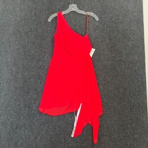 Ieena for Mac Duggal Dress Womens 2 Red One Shoulder Rouched Mini Cocktail