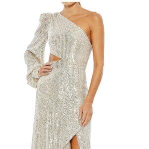 Ieena for Mac Duggal Dress Womens 2 Silver One Shoulder Sequin Gown Slit Formal