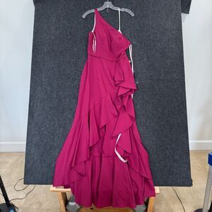 Ieena for Mac Duggal Dress Women's 6 Fuchsia One Shoulder High Slit Ruffle Gown