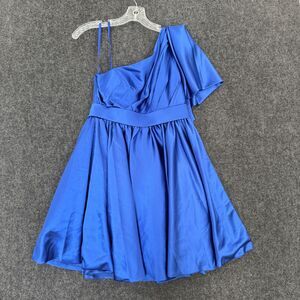 Ieena for Mac Duggal Dress Women's 6 Royal Blue Bow One Shoulder Satin Cocktail