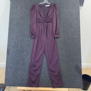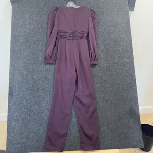 Ieena for Mac Duggal Jumpsuit Womens 0 Purple Plum Satin V Neck Ruched Waist