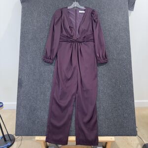 Ieena for Mac Duggal Jumpsuit Womens 12 Purple Satin Plunge V Neck Ruched Waist