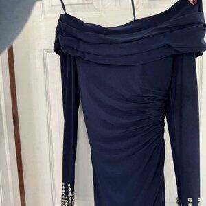 Ieena for Mac Duggal Midnight Blue Embellished Long Sleeve Dress
