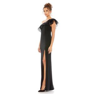 Ieena for Mac Duggal One Shoulder Ruffle Evening Gown in Black Size 10