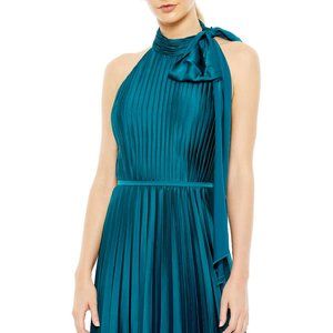 Ieena for Mac Duggal Pleated High Neck Kitten Bow Midi Dress in Teal Size 2