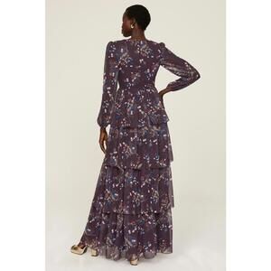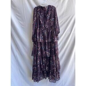 Ieena for Mac Duggal Purple Floral Tiered Gown Size 14 MSRP $398