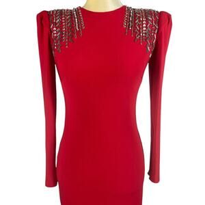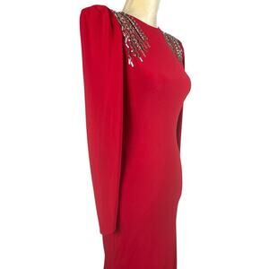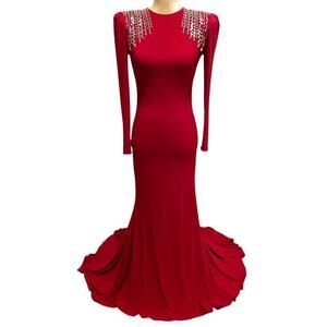 Ieena for Mac Duggal Red Formal Maxi Dress Size 4 Crystal Details Prom Wedding