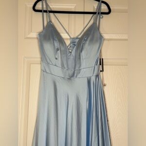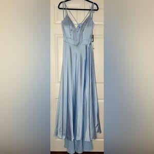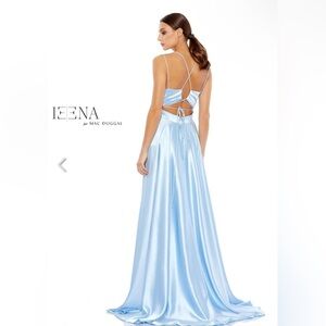 Ieena for Mac Duggal Satin Strappy-Back High Slit Gown Size 12 Style # 55278 NWT