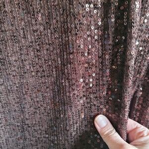 2 small lines on front with approx 3 to 4 micro sequins missing. Hard to see. Loose string. One ver small line of 3 sequins missing on lower back. Overall, hard to see because of how tiny they are and color. PRICE REFLECTIVE OF FLAW. please see pics!