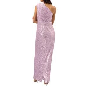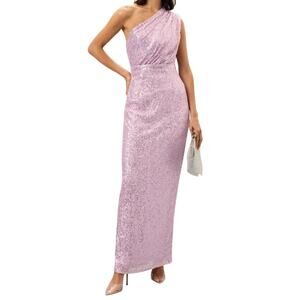 Illuminate the night in this Sequined Ruched One Shoulder Gown, crafted from dazzling sequin fabric, this gown is a show-stopping look. Featuring a chic one-shoulder neckline and sleeveless design, it's your go-to for making a statement on any special occasion.
