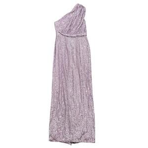 Ieena for Mac Duggal Sequined Ruched One Shoulder Gown in Lilac, Size US 2