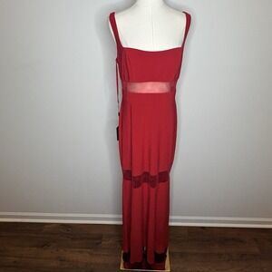 NWT - Ieena for Mac Duggal Sheer Mesh Panel Red Column Gown Womens Size 8 11698