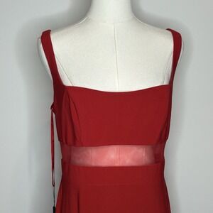 Ieena for Mac Duggal Sheer Mesh Panel Red Column Gown Womens Size 8 11698