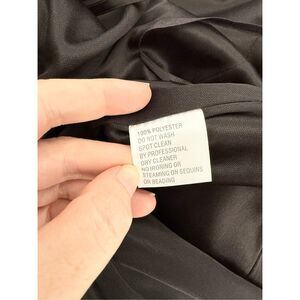 Excellent condition dress from Mac Duggal. Two faint shiny spots on the front next to the crossover panel where it looks like the fabric melted a tiny bit. It is still soft, and not noticeable. See final image.