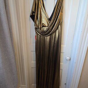 Ieena for Mac Duggal black Tie gold asymmetric dress size 18 NWT