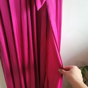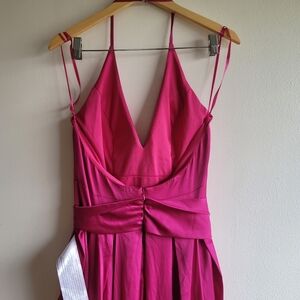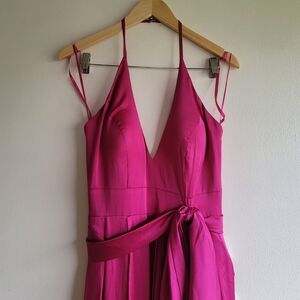 Ieena for Mac Duggal,Charmeuse Halter Strap Soft Tie Waist Gown, Magenta, Size 6.