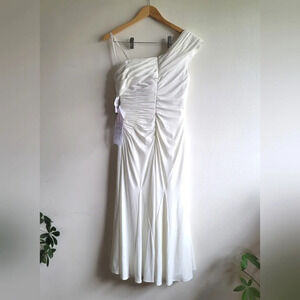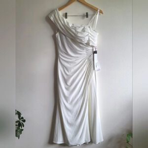 Ieena for Mac Duggal,Ruched Off The Shoulder Midi Dress,White/Ivory, Size 6,NWT