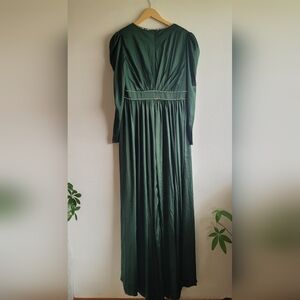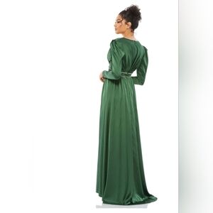 Ieena for Mac Duggal,Satin Puff Shoulder Gown,Emerald Green/Rhinestone,Size 10