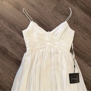 Ieena by max Duggal faux wrap sleeveless flowy midi dress