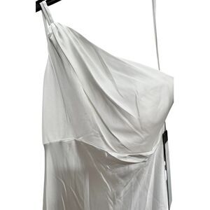 Ieena for Mac Duggal White One Shoulder Double Strap Satin Gown - Size 2 - NWT