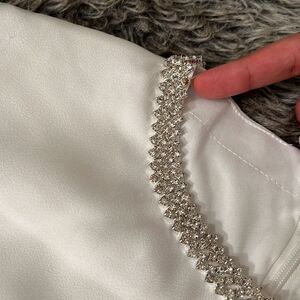Ieena for MacDuggal Rhinestone Neckline Draped Mini Dress