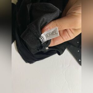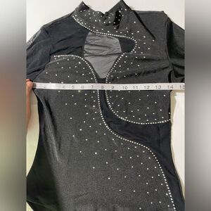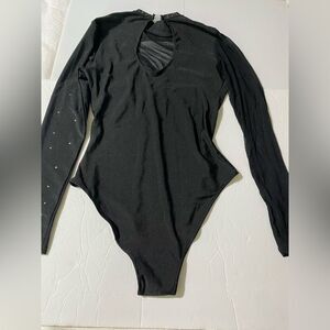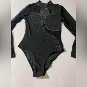 Iefiel Dance costume bodysuit leotard black mesh long sleeve rhinestone adult S