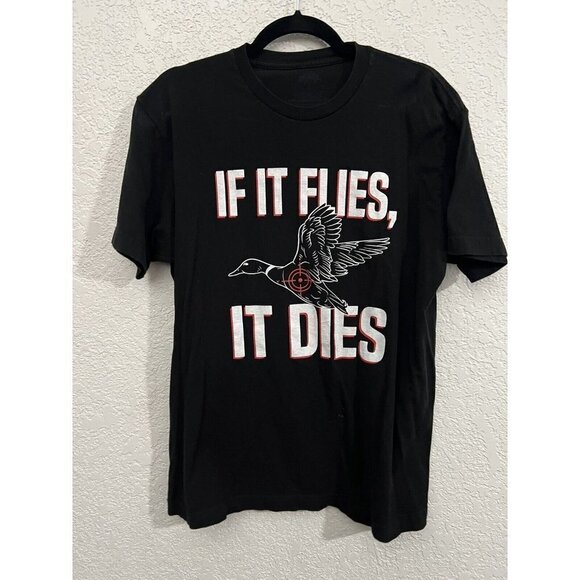 If It Flies It Dies, Waterfowl T-Shirt Men's Large Black Hunting (1D)