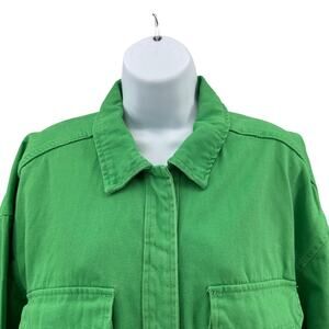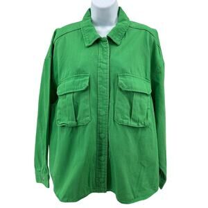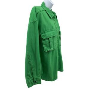 If It Were Me Denim Shacket WMNS L Apple Green Cotton Utility Pockets Button Up