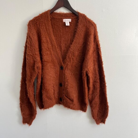 If It Were Me Oversized Fuzzy Rust Orange Button-Up Cardigan Sweater Small