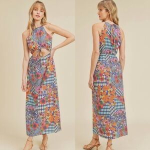 If She Loves Dress Women Small Maxi 70s Floral Cut Out Poppy Reversible B29