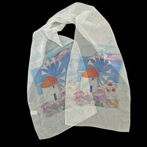 Ifasma Scarf Made In Greece with Windmill Design Rectangle Sheer Wearable Art