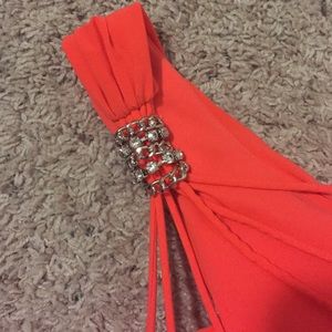 Carol Lin orange designer dress with silver embellishments. Size 10. Only wore once.