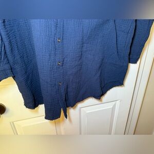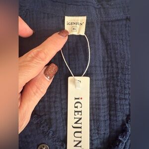 Igenjun Navy Gauze V Neck Beach Pool Coverup NWT XL Resort Wear Swim Tunic LS