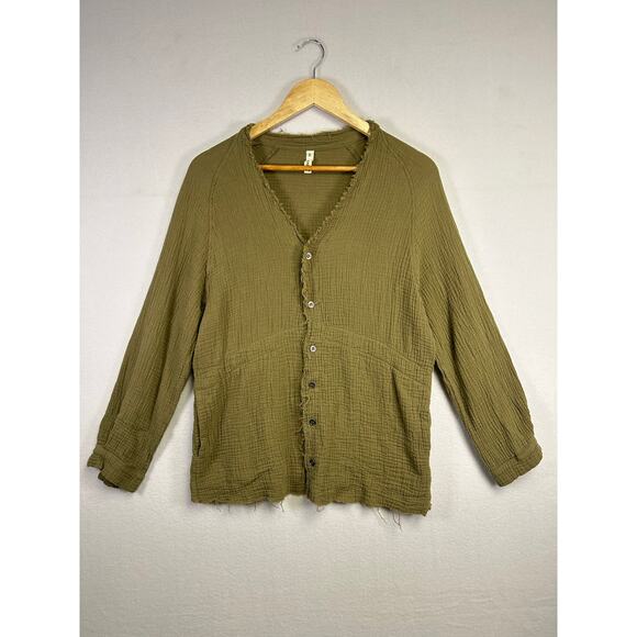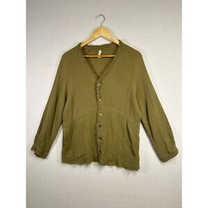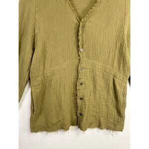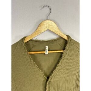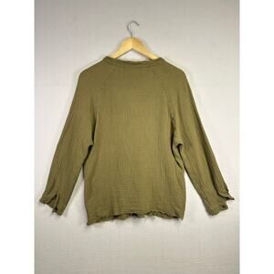 Igenjun Woman's Green Peasant Botton Down Top - Size Small Bobo Casual
