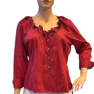Igigi Aurelia Blouse Plus Size 22 Red Ruffled Neck Turn-Up Cuffs Button Up NWT