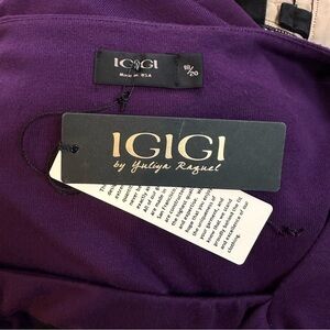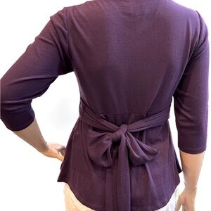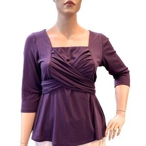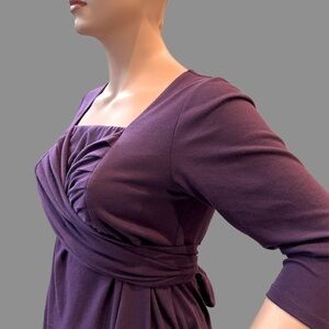 Igigi Baby Doll Top, Plus Size 18/20 Purple Tie Back Ruched Shirt 3/4 Sleeve NWT