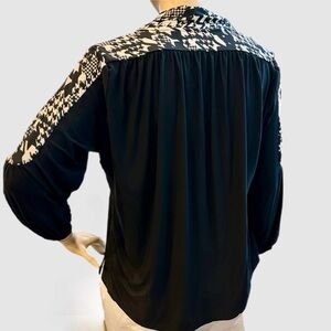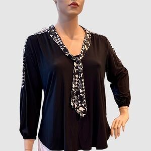 Black Top with Black & White Print Accents to neckline and arms/shoulders