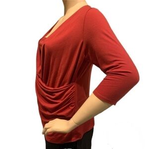 Igigi Jersey Top Faux Wrap Layered Look Red 3/4 Sleeves Cami Ruching Plus 18/20