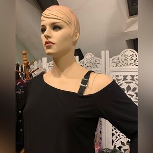 Igigi Slinky Black Top Plus 3X Single Strap Buckle Cold Shoulder Long Sleeve NWT