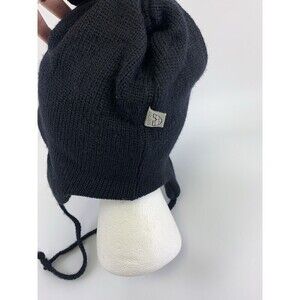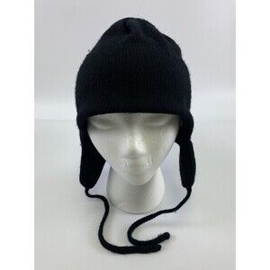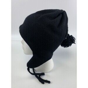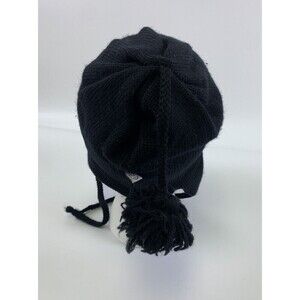 Igloos Black Wool Knit Eat Flap Hat Winter Pom Pom Ball Unisex Adult One Size.