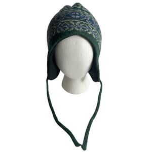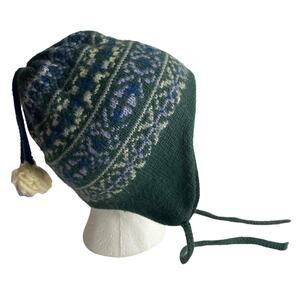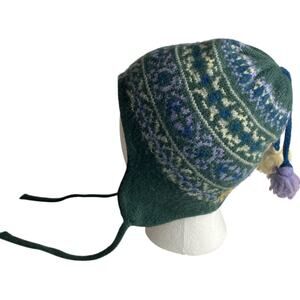 Igloos Fair Isle Wool Beanie Hat Green Tassels Earflaps One Size USA Unisex Ski