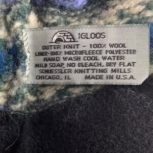 Features: Schuessler Knitting Mills; Nordic fair isle print; two top tassels; earflaps; two chin ties straps; fleece lined; Igloos logo of side; cozy; warm; casual; everyday; outdoors wear; outerwear; fall; winter; gift; unisex; ski; lodge; cabincore