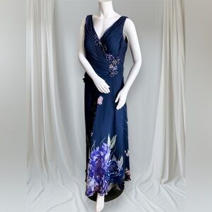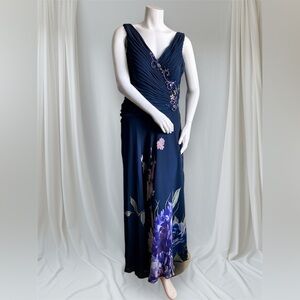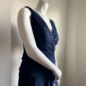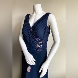 Ignite Evenings Navy Bead Floral Pleated Gown Floor Length Maxi Dress Wedding 14