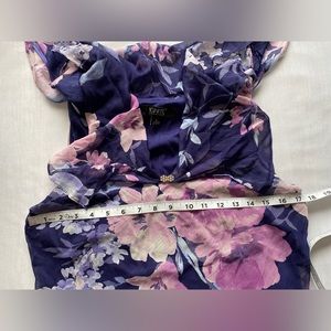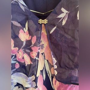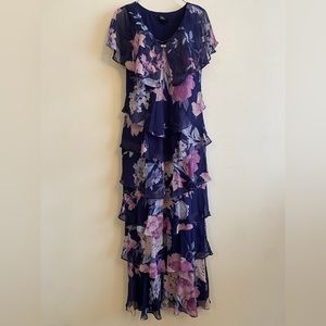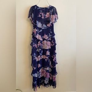 Ignite Evenings Navy/Pink Floral Print Tiered Sheath Long V-Neck Dress Size 6