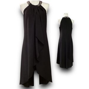 Ignite Evenings Petite Size Satin Back Crepe Beaded High-Low Halter Neck Sleeveless Cocktail Party Dress Size 14P New with Tag