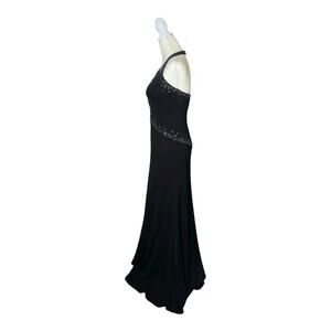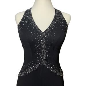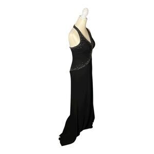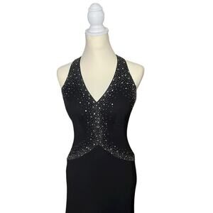 Ignite Evenings by Carol Lin vintage beaded/sequined halter style evening wear dress. Stunning from head to toe, with lots of elegant features and eye catching pieces to it. Partial back zip for easy on and off. US size 6, mannequin is a standard size 8 for your reference. It fits her snugly but allows for it due to the nature of the slight stretch in the materials. Light boning to help keep cinched waist structure and non removable padding at the chest.