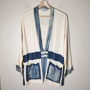 Iguana Rayon Gauze Kimono Cardigan Lagenlook Open Front Patch Pockets