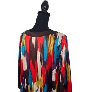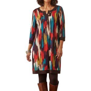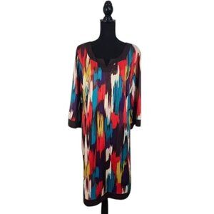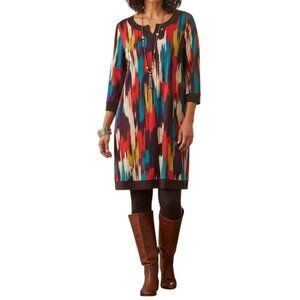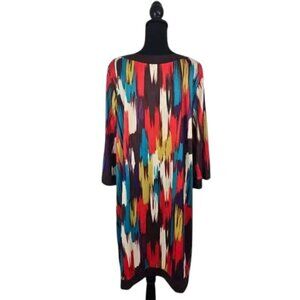 Ikat Tunic Dress Womens 2XL Tall Multicolor Stretch Notch Neck 3/4 Sleeve