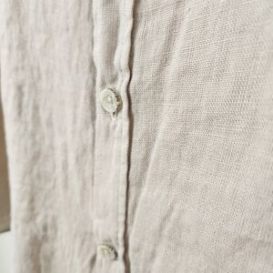 In great pre-owned condition. Short sleeve. Khaki colored. 100% linen.